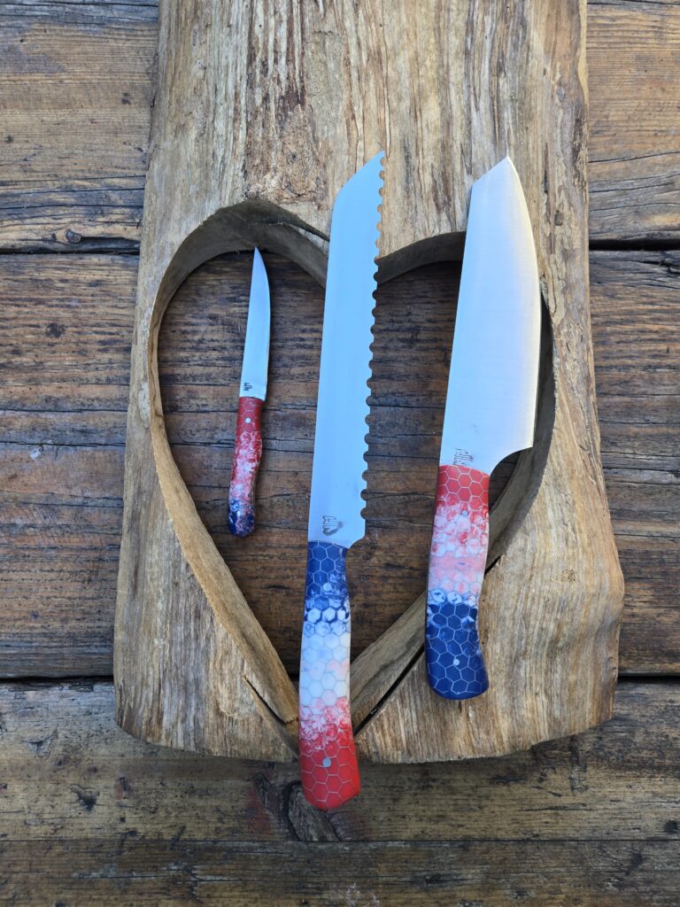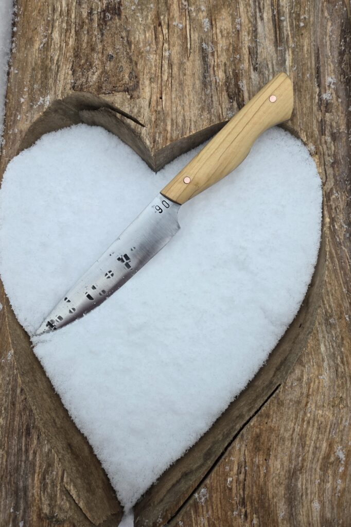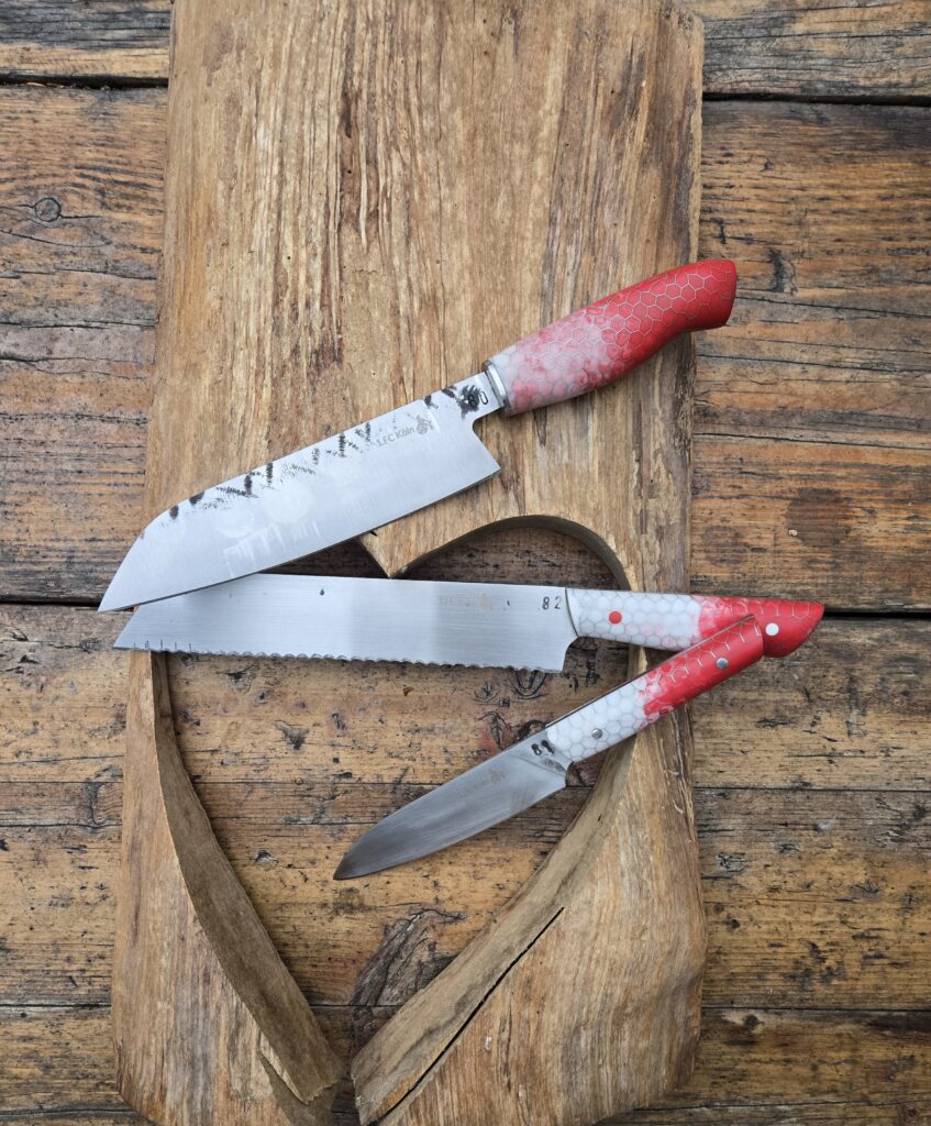 #90 Sandvik 12C27 Kleines Küchenmesser Eschenholz und Kupfer#80-82 Sandvik 2farbiges Epoxid mit Aluwabe – 1.FC Köln Kollektion#Klappmesser Feilenstahl und Esche#70 – 72 Messerset FC Bayern Sandvik 12C27 Epoxidharz Aluwabe#63 Kohlenstoffstahl mit Maserpappel und Kupferpin – Santoku 30 cm#48 Filetiermesser Sandvik Holzgriff mit Epoxidharz#56 C100 Kohlenstoffstahl, Messing, Jeans, 1,6mm, Santoku#44 Santoku Sandvik Mooreiche Amaranth 21cm#73 Böhler N690 rostträger Stahl – Santoku, Ebenholz, Olivenholz, Mosaikpin#3 Feilenstahl Jagddolch Ebenholz Griffkappe als Pinneken#7 Jagdmesser, Hupraspel, Kupfer, Nussbaum#11 großes Santoku, Sandvik C27, Ebenholz#14 Sandvikstahl Zebranoholz und Büffelhorn Santoku#18 Feilenstahl Walnussholz und Zwinge aus Hufeisen#22 langes Brotmesser Kohlenstoffstahl Messingzwinge und Holz mit Epoxid#29, 30 Zwillinge Hufraspel Kohlenstoffstahl Micarta Walnussholz#36 Carbonstahl Chefkochmesser Ebenholz Epoxid Lego Starwars#40 19cm Santoku Carbonstahl Amaranth und Epoxidgriff#44 Jagdmesser Feilenstahl Edelstahlzwinge Geweihgriff#48 Santoku Sandvik 12C27 rostträge Epoxidharz mit Tannenzapfen#52 großes Grillmesser Outdoor Kohlenstoffstahl Micartagriff#57 Damastmesser Campinghelfer Damastzwinge Ebenholz#61 Prototyp Feilenstahl Messing und Epoxidharz#63 Kleines Küchenmesser Epoxid mit Piniennadeln Messing#55 Outdoormesser Caronstahl Micartagriff
